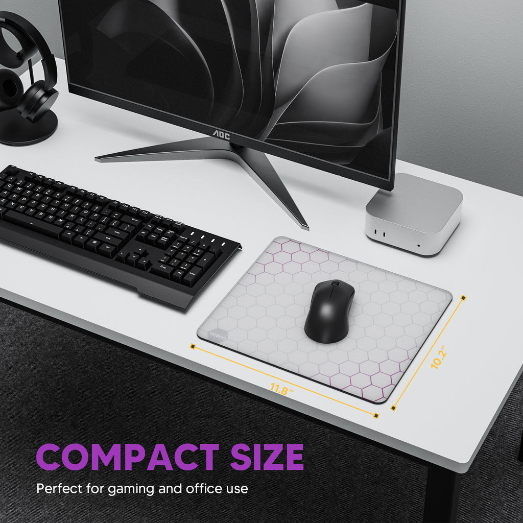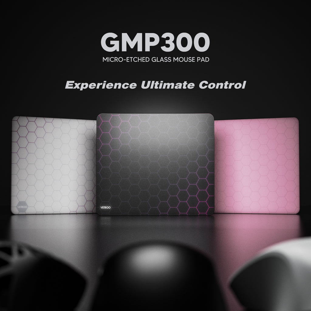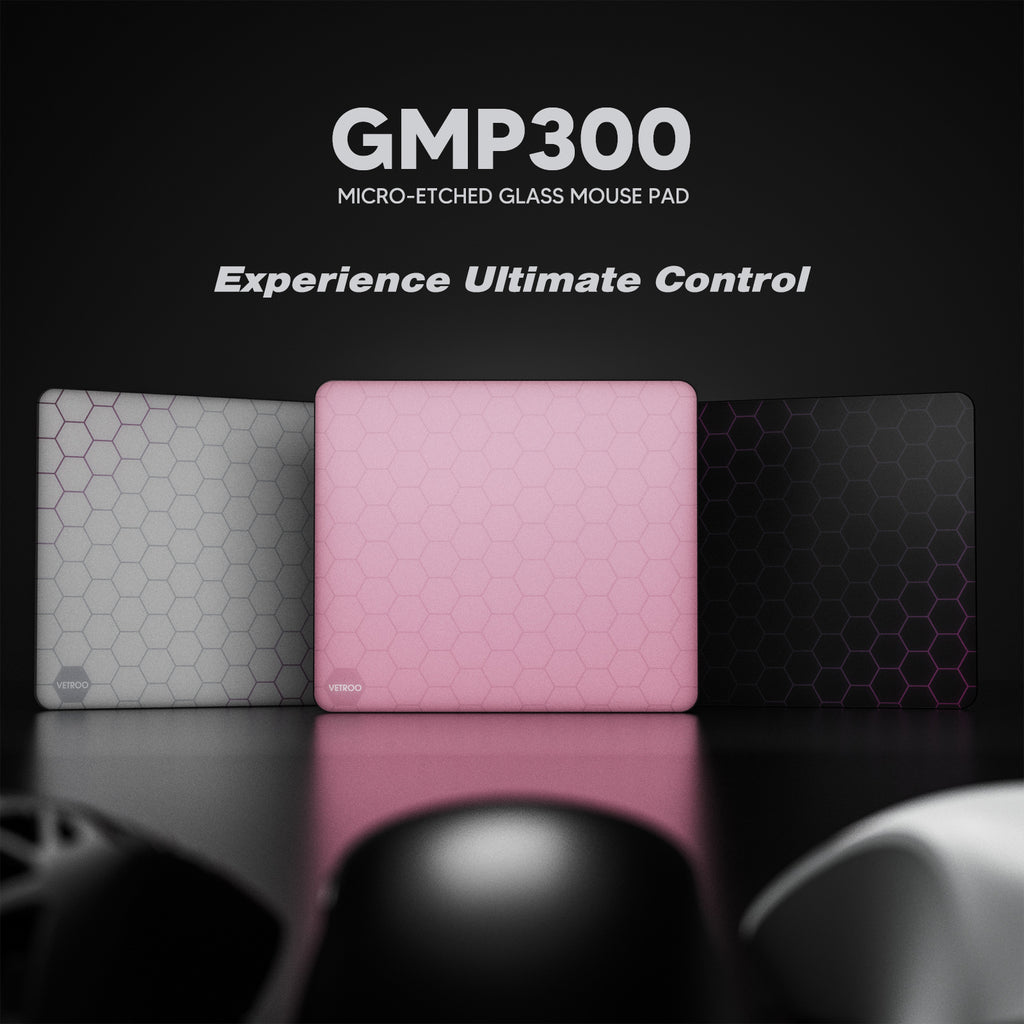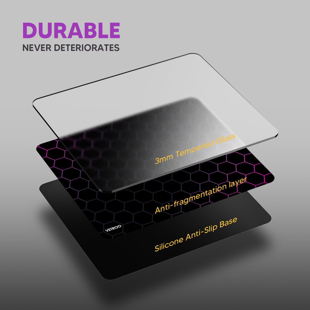 Vetroo GMP300 Tempered Glass Gaming Mouse Pad, Micro-Etched 3mm Tempered Glass with Silicone Anti-Slip Base, Multi-Layer Curing, Smooth Operation for Esport & Work